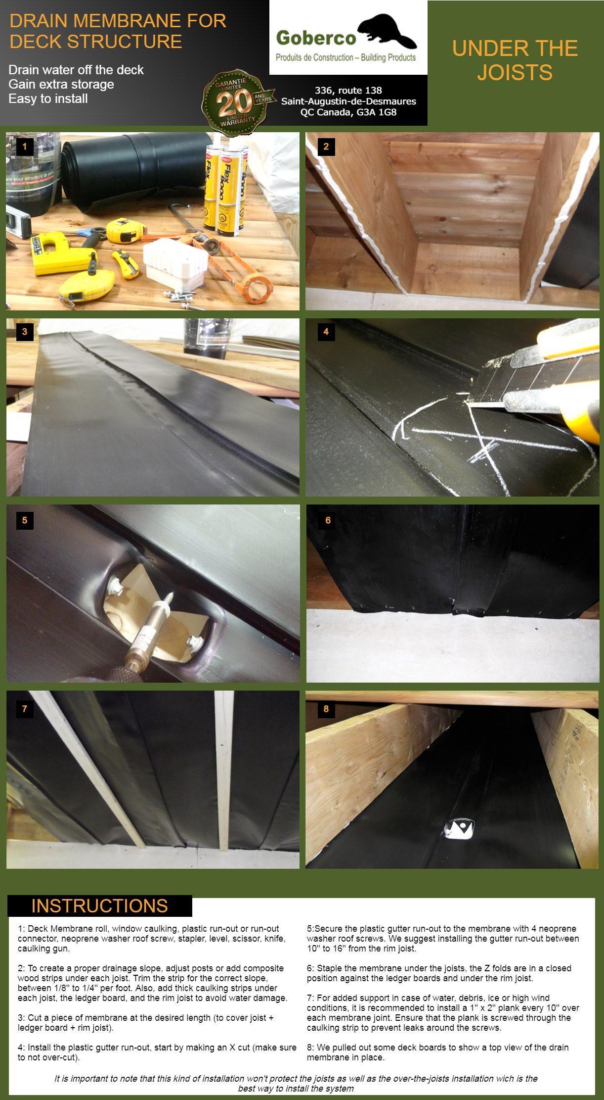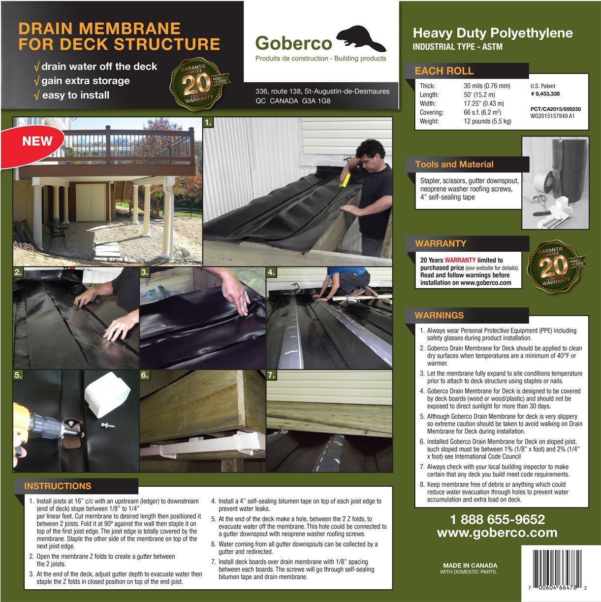 Upgrade your deck effortlessly with Goberco's Under Deck Drainage System. This user-friendly under deck waterproofing system simplifies installation, allowing you to transform your outdoor space with ease. The innovative design of the waterproof membrane ensures a seamless integration into your existing deck structure, creating a barrier against water intrusion. With step-by-step instructions and hassle-free assembly, you can quickly and efficiently enhance your deck's functionality. Say goodbye to the worries of water damage and hello to a dry, protected under deck area. Goberco's deck waterproofing system makes the installation process a breeze, providing you with a reliable and durable solution for your outdoor living space.